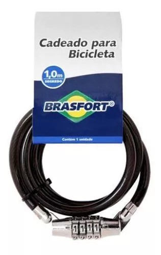 O Cadeado Para Bicicleta Brasfort possui um corpo confeccionado em aço espiral de alta resistência com um revestimento em PVC cristal fume flexível, possui um tamanho de 1 metro, 8mm e vem com segredo variável.